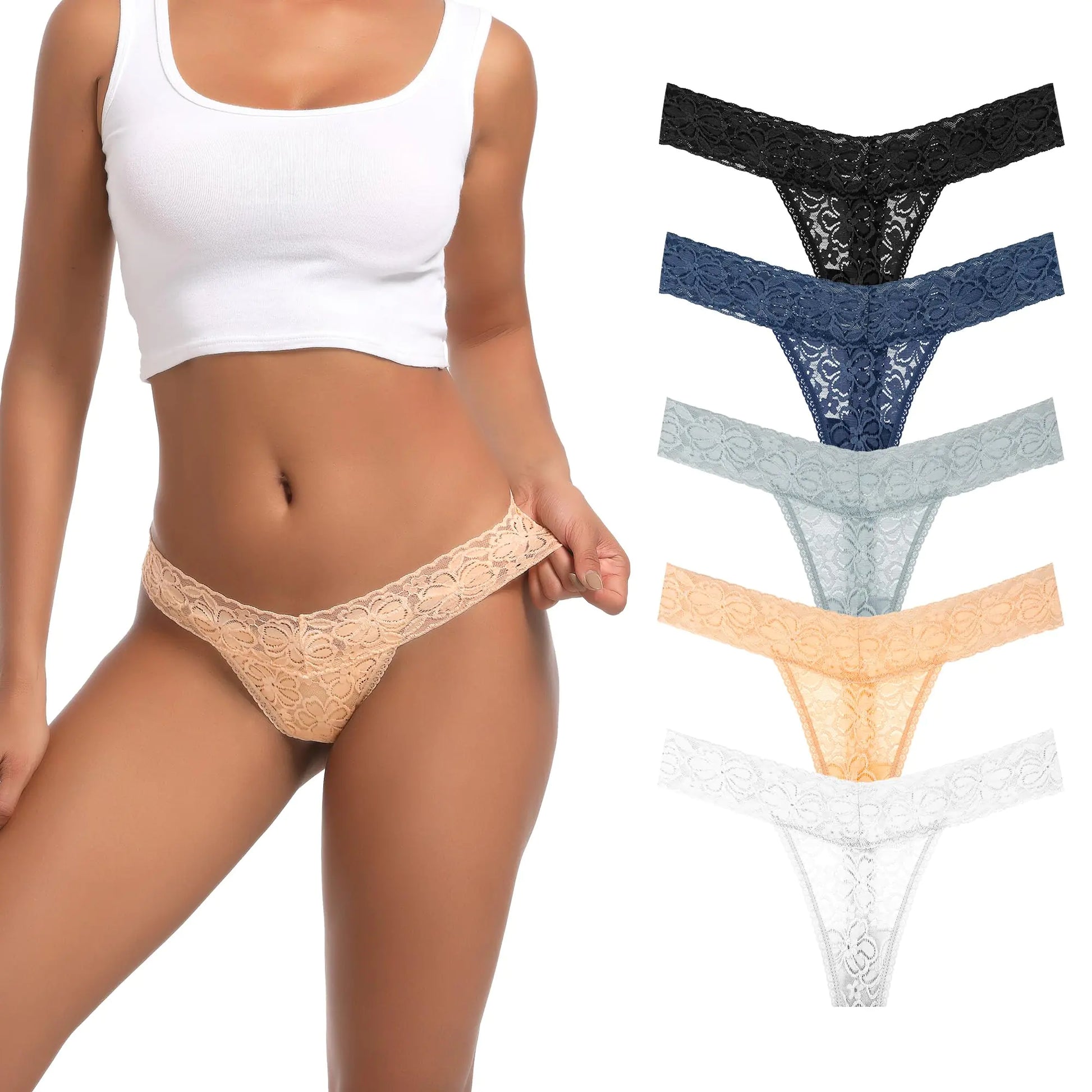 [Fabric Composition: It is made of 95% Lace 5% Spandex which is smooth and silky to ensure comfort and breathable prevent skin from irritation. It can keep your private parts dry and clean. Elegant and Feminine: The lace material used in these thongs offers a delicate and feminine touch making them a popular choice for women seeking a stylish underwear option. Comfortable and Breathable: The soft lace material ensures maximum comfort while the thong design provides light support and coverage without being constricting. "Versatile Pairing: The lace thong can be paired with a wide range of outfits from sexy dresses to fitted pants to enhance ones overall appearance." Occasion-Appropriate: While suitable for daily wear the lace thong is often worn for special occasions or when a woman wants to feel extra sexy and confident.]